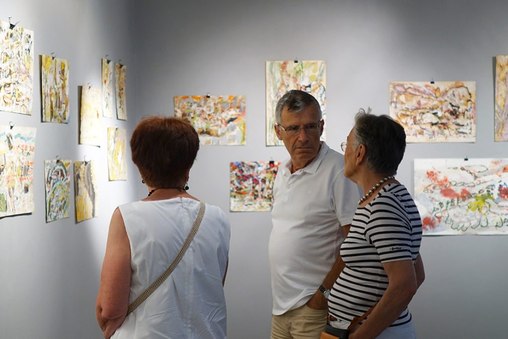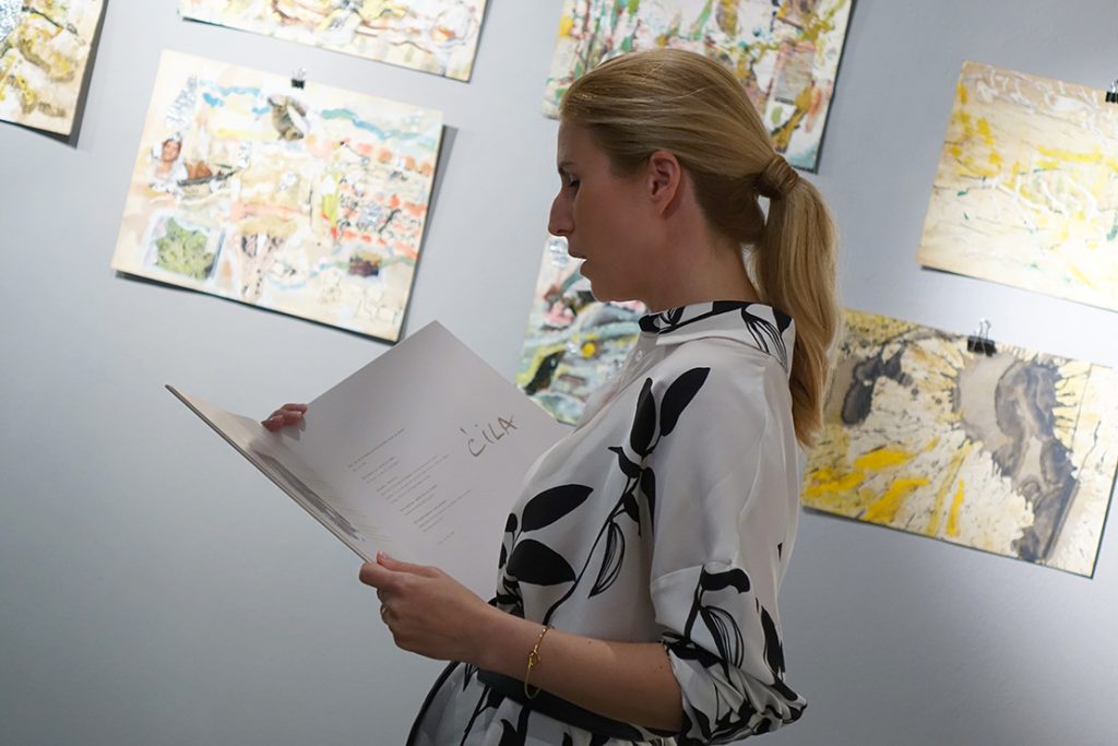 – Crnogorski slikar s krčkom adresom, Dimitrije Đurić Ćila, istakla je Kocijan, bio je jedan od onih pomalo skrivenih umjetničkih talenata čiji rad tek treba steći zasluženo priznanje. Nadasve produktivan akademski umjetnik osebujnog izraza za života je izlagao na samostalnim i grupnim izložbama koje su s obzirom na obim i kvalitetu Đurićeve likovne izvedbe, ipak bile nedovoljno brojne i nedovoljno učestale. Jedan od razloga je autorovo viđenje umjetničkog stvaralaštva kao ispunjenja vlastite unutarnje potrebe, a ne želje za priznanjem ili komercijalnim uspjehom. Iako je 2013. godine objavljena monografija s pregledom njegovog opusa, smatram kako bi ozbiljnija istraživanja i publikacije tek trebali uslijediti, dok privatni arhivi u vlasništvu njegove obitelji čuvaju brojne crteže i slike koji nikada nisu bili izlagani u galerijskom prostoru. Upravo zato odlučeno je da se dio njegove značajne slikarske ostavštine po prvi puta izložiti u Krku i baci novo svjetlo na Đurićevu umjetnost. Dimitrije Đurić na razmeđi je apstraktnog ekspresionizma, enformela i novog realizma, tumači Kocijan, no, kako bismo u potpunosti razumjeli njegovo slikarstvo, potrebno je sagledati utjecaje i impulse sredine u kojoj se umjetnički formirao pedesetih i šezdesetih prošlog stoljeća. Školovao se u novooformljenim umjetničkim centrima, Cetinju i Herceg Novom te u Beogradu u klasi slikara Mila Milunovića koji je utjecao na brojne mlade crnogorske slikare. Ta je nova generacija umjetnika bila neopterećena i slobodna od pojava i stilova u svjetskoj umjetnosti, okretali su se sebi i svojoj okolini, individualnom doživljaju povijesti i stvarnosti te su se snažno ispoljile osobine koje trajno ostaju karakteristične za crnogorsko likovno stvaralaštvo – individualizam, traganje za originalnim izrazom, za posebnošću i u velikoj mjeri duboko i iskreno prihvaćanje i poštovanje principa čiste likovnosti. Takav je pristup, ističe Kocijan, vidljiv u Đurićevim ranijim radovima velikih formata gdje rastočeni oblici daju naslutiti poneki poznati motiv poput vizure grada ili mrtve prirode, ne stavljajući ga u fokus, već naprotiv, pokušavajući ga sakriti. U manjim slikama kombiniranih tehnika glavni pokazatelji autorovog trenutnog senzibiliteta su izražena materijalnost i spajanje različitih likovnih metoda u prividno kaotične kompozicije. Osjeća se određena napetost, kao da je u sukobu sam sa sobom, a jedini način da pobijedi, jest uvijek i iznova stvarati. Slike koje je sa snažnim stvaralačkim impulsom nizao pred kraj svog života, spajaju slikarske i crtežne materijale i tehnike. Koristi se mokrim i suhim medijima koje nanosi brzim, jednostrukim potezima, te različitim materijalima poput novinskih isječaka, fotografija i dijelova ambalaže. Pritom svi slojevi slike ostaju jasno vidljivi, te se lako razaznaju prozračni akvarelni nanosi, crtačke linije običnom olovkom, točkice kistom ili kapljice boje postignute drippingom. Upravo se linijama kao najnaglašenijim elementima Đurićevih slika, najbolje izražava duhovno stanje umjetnika, koji je za svoja djela rekao da osmišljava nešto nedefinirano, pri čemu je definicija tek nagovještaj nečega. Naglašeni individualizam predstavlja osnovni princip koji je obilježio umjetnički krug iz kojeg je potekao Dimitrije Đurić Ćila, ostajući mu vjeran do kraja života i ustrajući na nekonvencionalnosti te uvjerljivom i osobnom likovnom jeziku, zaključila je Kocijan.