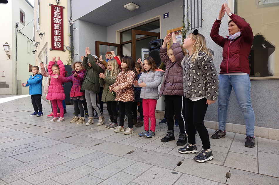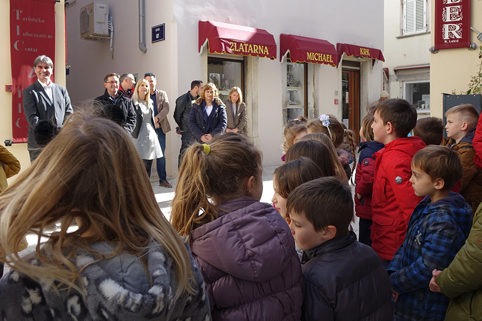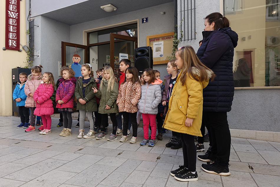 Pored krčkih mališana koji su u pratnji odgojiteljica, na trgu pred galerijskim prostorom, priredili kratak pjevačko-plesački program, o izložbi su redom kazivali: Maja Parentić, ravnateljica Centra za kulturu Grada Krka, Irena Žic Orlić, ravnateljica Dječjeg vrtića Katarina Frankopan i Darijo Vasilić, krčki gradonačelnik, dok su svojim prisustvom ovaj hvalevrijedan izložbeni projekt podržali čelnici i predstavnici kako osnovne i srednje škole, tako i krčkih komunalnih društava.