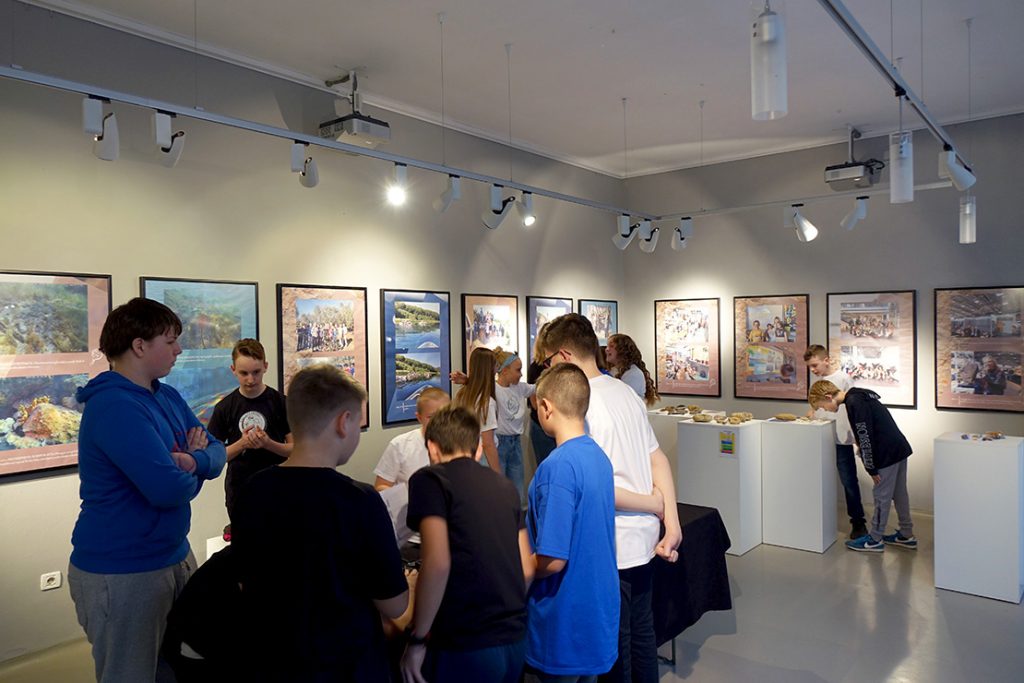Izložbu koja uvodi u sve aktivnosti Istraživačke grupe, i to putem fotografija, video-zapisa i konkretnih izložaka, primjerice fosilnih životinja iz različitih geoloških razdoblja i šarenih geoda te knjiga i raznih istraživačkih alata, zajednički su mnogobrojnoj publici predstavili upravo najmlađi krčki istraživači.