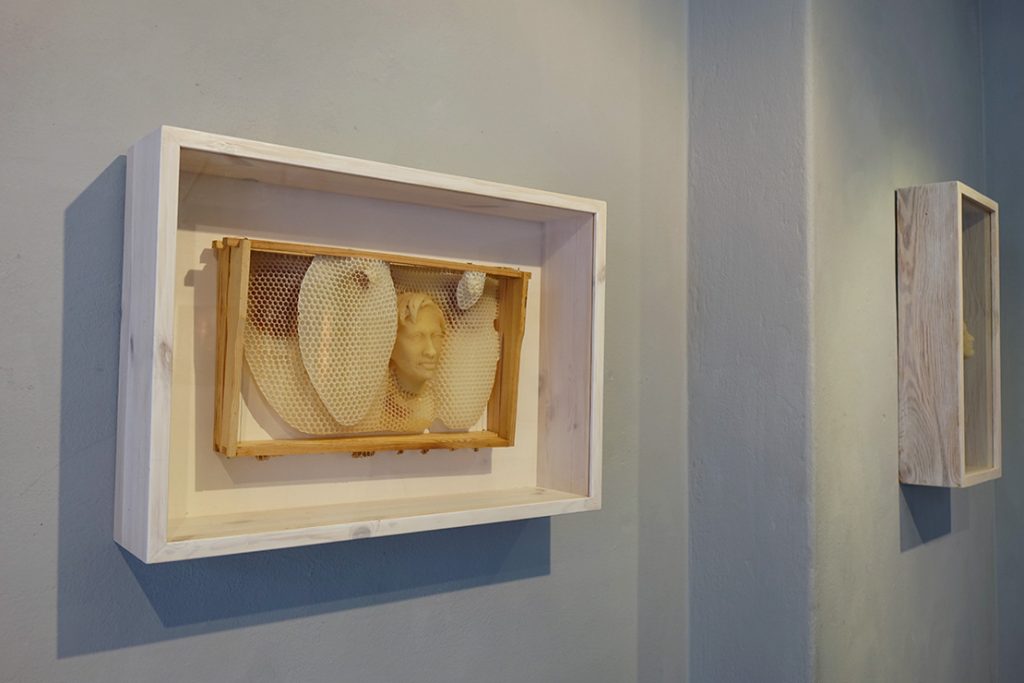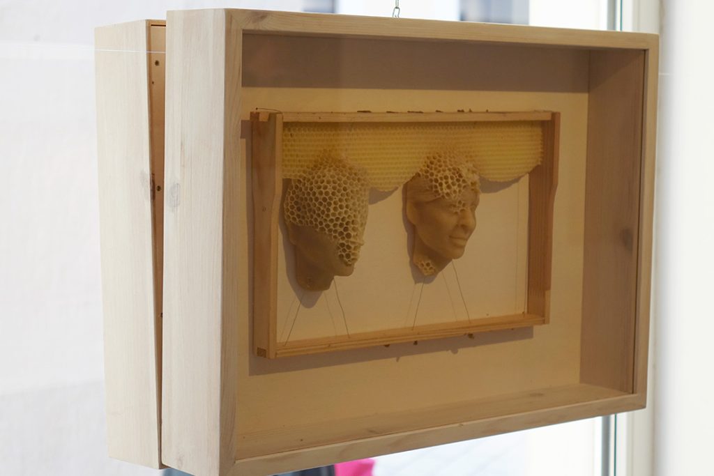 – Opus umjetnice Bärbel Rothhaar za mene je svakako bio veliko otkriće, tumači Kocijan, i zaista sam zahvalna što sam bila dijelom ovog jedinstvenog izložbenog projekta. Tekst objavljen u katalogu koji prati izložbu nosi naziv API – umjetnost, od latinske riječi za pčelu Apis, evocirajući tako djela u čijem je fokusu pčela. Pčele u umjetnosti nisu novina, one se kao motivi javljaju još u periodu prahistorije, a ljude, posebice umjetnike, intrigirale su tijekom čitave povijesti. No ono što je novo u suvremenoj umjetnosti, pogotovo zadnjih 15-ak godina, suradnja je umjetnika sa živim pčelama, bilo da ih koriste u performansima ili kao suradnike u stvaralačkom procesu. Nastavno na potonje, Bärbel Rothhaar osim što se bavi umjetnošću, surađujući s pčelama zalazi u područje ekologije, biologije, etike i posebne vrste estetike. Njezinu izložbu, pored uljanih portreta većih dimenzija, čine i minijaturni portreti pčelara naglašenih psiholoških karakteristika izvedeni u gipsu i postavljeni na zid galerije. Osim na zid ona ta minuciozno modelirana lica, ovog puta kreirana od pčelinjeg voska, umeće u košnice puštajući pritom pčelama da dovrše skulpturu, što znači da nema nikakvu kontrolu nad finalnim uratkom. Iz svega navedenog, nameće se zaključak kako je jedna od najbitnijih karakteristika rada Bärbel Rothhaar naglašavanje povezanosti i prožimanja svih elemenata u kontekstu našeg eko-sustava.