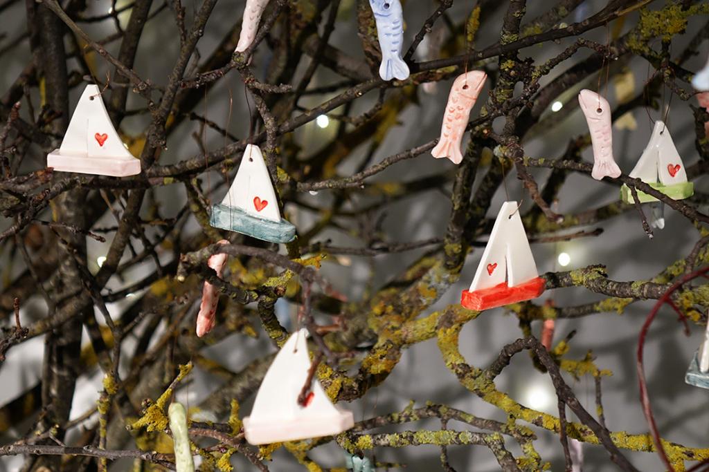 – Jako mi je drago, ističe Doma, da Krčanima iznova možemo predstaviti značajan dio onog što smo kreirale tijekom ove godine, a što sigurno ne bi bilo moguće bez podrške koju su nam uzastopno pruža Centar za kulturu Grada Krka. Iako u Decumanusu nije izloženo sve čime raspolažemo (ostatak se može vidjeti u sjedištu udruženja na adresi Trg sv. Kvirina 1!), za ono što jest smatramo da nas zaista kvalitetno prezentira. A izloženo je mnogo zanimljivih radova, dodaje Vojnić, inspiriranih blagdanskim temama i nastalih različitim tehnikama, od reciklaže krčke vune i ostalih prirodnih materijala, pa sve do dekorativnih i uporabnih predmeta kreiranih u zahtjevnom mediju keramike, s posebnim naglaskom na zanimljiva rasvjetna tijela i svijećnjake kojima je motiviran sam naziv izložbe. Posjetiteljima će sigurno posebno zanimljiva biti centralna instalacija – grane ukrašene brojnim keramičkim ukrasima (mahom minijaturnim ribicama i brodicama) te stol ispunjen oslikanim keramičkim šalicama od kojih su neke postale iznimno atraktivni svijećnjaci koji mogu biti iznimno domišljat božićni poklon.