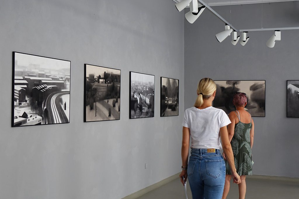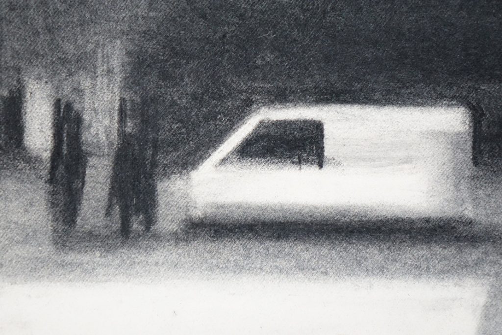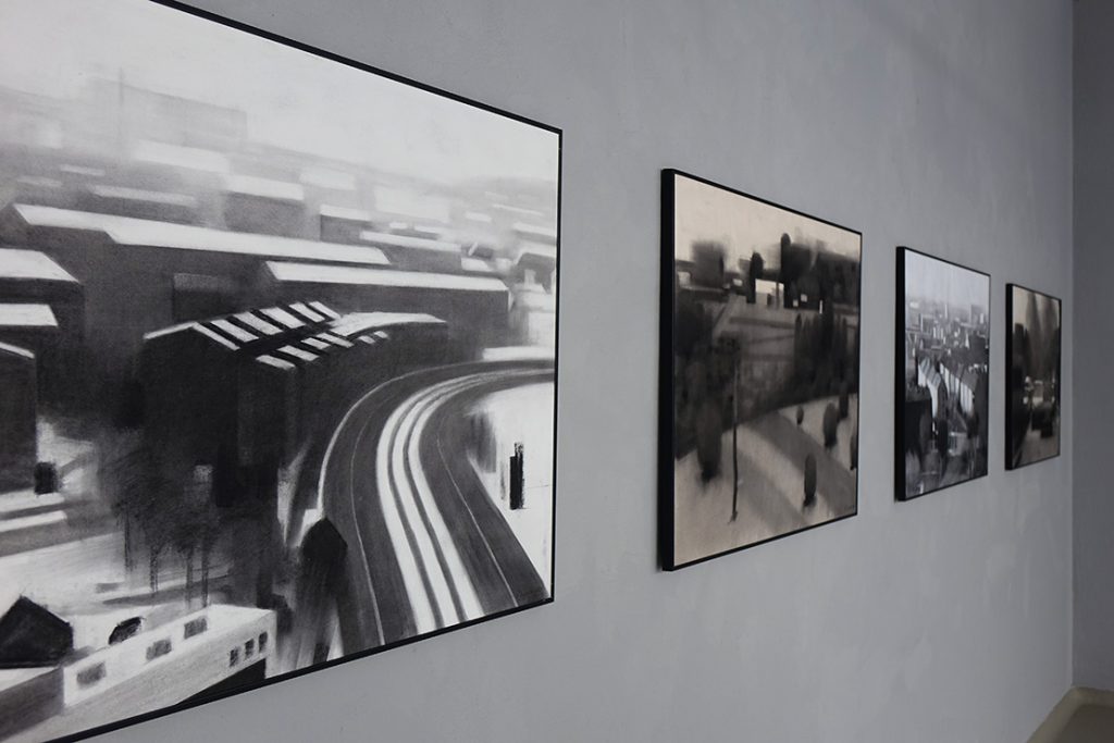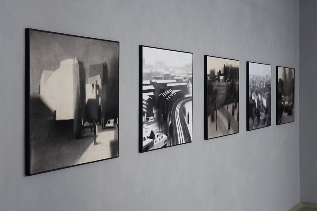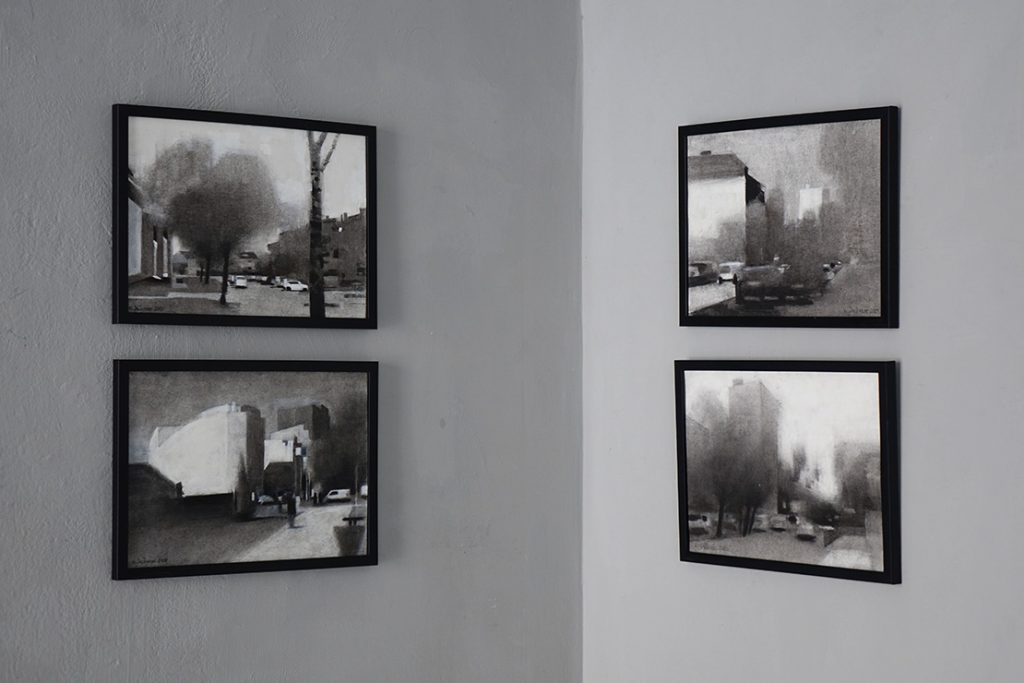 – Na desetogodišnjicu izložbenog projekta U kontrapunktu, imamo prilike susresti se s izvrsnim likovnim stvarateljima, navodi Ritoša, a ovogodišnjim izložbenim diptihom U okviru fokusiramo se na crno-bijelu tehniku, kod Nenada Jalšovca u ugljenu, a Fanite Barčot-Nikolac u fotografiji. Monokromatski izražaj izaziva posebnu atmosferu nostalgije, ali i prezentira potrebu za jasnijim sagledavanjem stvari. Raščišćavaju se prikazani objekti i svode na osnovno, naglašava se kontrast, tekstura, kompozicija. Oboje su okrenuti unutrašnjim stanjima i potrebom da iskomuniciraju proces kroz koji prolaze i intenzivne emocije koje ih zaokupljaju. Oboje rade promišljenim i postepenim tempom, snažno pokrenuti fenomenom svijetla i sjene. Spajaju ih i teme koje uključuju pitanja otuđenosti, izolacije, pokušaje komunikacije i osjećaj neshvaćenosti. Spaja ih, također, izraziti individualizam. Njihova djela prožima filozofija egzistencijalizma, pri čemu se naglašava sloboda, odgovornost i jedinstvenost pojedinca u suočavanju s vlastitim postojanjem. Ljudi su bačeni u svijet bez unaprijed određene svrhe te su odgovorni za svoje postupke i identitet, i pronalazak smisla u kaosu inherentnog besmisla. Potpuno svjesni ove istine oni na poetične načine istražuju perspektive interne stvarnosti u kontrastu s vanjskom; kod Jalšovca vanjski prostori postaju tema koja se obrađuje na intimistički način, a Barčot-Nikolac unutrašnje prostore teatralizira na van. Izložbom Crteži, tumači nadalje Ritoša, predstavlja nam se vrhunski majstor svjetla i sjene Nenad Jalšovec koji tehnikom ugljena oblikuje pomno odabrane kadrove najčešće gradskih, često zagrebačkih vizura. Scene koje rijetko susrećemo u svijetu likovnosti interesni su fokus autora: automobili, parkirališta, prometne ulice, stambene zgrade. Uz njih se javljaju stabla, parkovi, rjeđe ljudi. Ovaj neobični odabir motiva izaziva začuđujući efekt u spoju s manirom izvedbe. Meki, sanjivi, pastozni pokreti ugljenom oblikuju pjesničku impresiju i sudaraju se s banalnim prizorima parkirališta. Svaki crtež poziva promatrača da promišlja o značenju ovih svakodnevnih scena. Autorov izraz odiše snažnom unutarnjom harmonijom, osjećajem mira i kontemplacije. Oduševljava njegova sposobnost da u chiaroscuro tehnici, bez pretjeranih detalja, stvori vrlo jasne oznake predmeta. Zgrade, ulice i stabala modelira virtuoznim suptilnim naznakama linije i plohe. Svodeći objekte na najbitnije, a pri tom zadržavajući njihova glavna obilježja, prenosi dojam zamagljene fotografije. Njegov proces rada obuhvaća primarno rad na otvorenom, u skladu s plain air metodologijom, no naknadno provodi elaboraciju u domaćem okruženju. Tijekom ovog procesa, pažljivo izdvaja ključne scene i reducira elemente, što rezultira izuzetno čistim i fokusiranim kompozicijama. Ovaj minimalizam pojačava poetski aspekt njegovih radova, što ih čini usporedivim s metafizičkim urbanim pejzažima Giorgia de Chirica. Automobili koji stoje ili se kreću u vatastoj mekoći izazivaju čuđenje i nejasnost, inače simboli brzine, buke i kronične vreve gradskog života ovdje su zarobljeni u tišini te gube svoj uobičajeni smisao i postaju tajanstveni. U svijetu mekoće i zagušenog zvuka nalazimo potpunu autonomiju autora koji nas vodi u oblast gdje se slikarski intimizam stapa s vanjskim prostorom, zaključuje Ritoša.