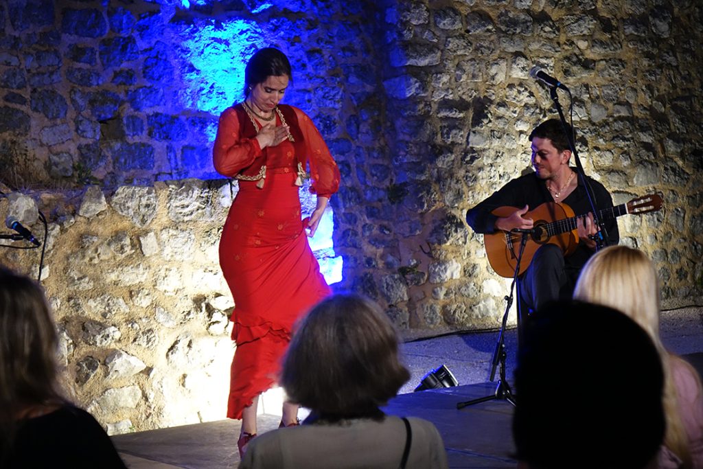 Vatra. Pulsiranje. Ritam. Strast… Ovaj zanimljivi duo publiku je oduševio nizom autorskih kompozicija inspiriranih flamencom koje su isprepleli tradicionalnim primjerima tog uzbudljivog glazbenog žanra kojeg karakteriziraju snažan, ritmički ton (toque), praćen izražajnom pjesmom (cante), a često i strastvenim plesom (baile). Neke od izvedenih numera, bez izuzetka nagrađene snažnim aplaudiranjem, bile su: Niebla, Entre Cielo en Tierra, Dame, Tu Mechon de Pelo, Atrapaita, Crni Mol, Bulerias, Manana, Impression Flamenca, Agua, Aire, Como No Romper…