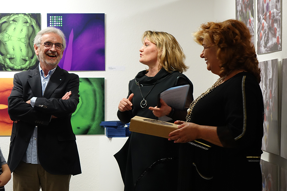 Ovom izložbom, istakla je Parentić, složen je mozaik s kojim smo htjeli ispričati priču o nama i našoj baštini, odnosno kojim smo svoju prošlost željeli interpretirati u sadašnjosti, ali za budućnost. Stoga, iznimna nam je čast u Muzeju Pachen, u gradu Rockenhausenu, gradu naših prijatelja, predstaviti autentično povijesno nasljeđe ispričano vizijama krčkih autora, i to Saše Lončarića, Sabine Barbiš, Marija Depicolzuanea, Željka Skomeršića i Igora Gržetića. Saša, inače izniman slikar, dodaje Parentić, svojim akvarelima i vinorelima na hiperrealističan i iznimno kontemplativan način interpretirao je sve ono što nas određuje kao ljude otočnog podneblja. Sabina i Mario krajnje inovativno pozabavili su se jednim od naših najstarijih nasljeđa – onim glazbenim – materijaliziravši dvoglasje tijesnih intervala, dok je Željku maketama povijesnih brodova pošlo za rukom prikazati svu ljepotu života ljudi s mora. Igor, vizualni umjetnik, po vokaciji grafičar, svojim novomedijskim kreacijama, primarno računalnim grafikama i fotografskim eksperimentima, pozabavio se pitanjem istinitosti svakog vizualnog obrasca, jer ono što je prikazano, ono što na nekoj slici vidimo, ne može odgovarati fizičkoj istini, već predstavlja naučen i vizualnom komuniciranju svojstven sustav znakova. Dakle, što li smo kadri vidjeti? San ili javu? Život ili snoviđenje? Prošlost ili budućnost, zaključila je naposljetku Parentić.