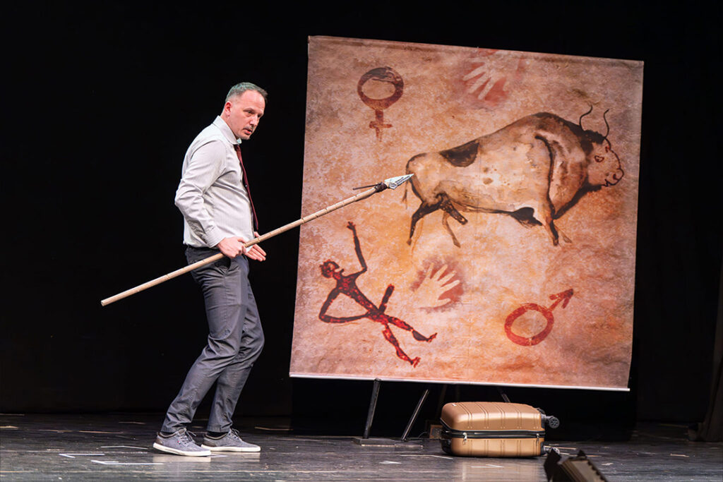 Legendarni Pračovjek, iza kojeg stoji autor Rob Becker, s mnogo humora i šarma istražuje razlike između muškaraca i žena, od prapovijesti pa sve do današnjih dana. Kroz niz komičnih situacija i iskrenih zapažanja, nagrađivani hrvatski glumac Peđa Gvozdić vječni rat spolova publici će približiti na zabavan, duhovit i nadasve iskren način. Predstava, u produkciji Zakon Teatra i Theatre Mogula, oduševljava publiku gdje god se izvodi, a sada po prvi put stiže i pred Krčane.