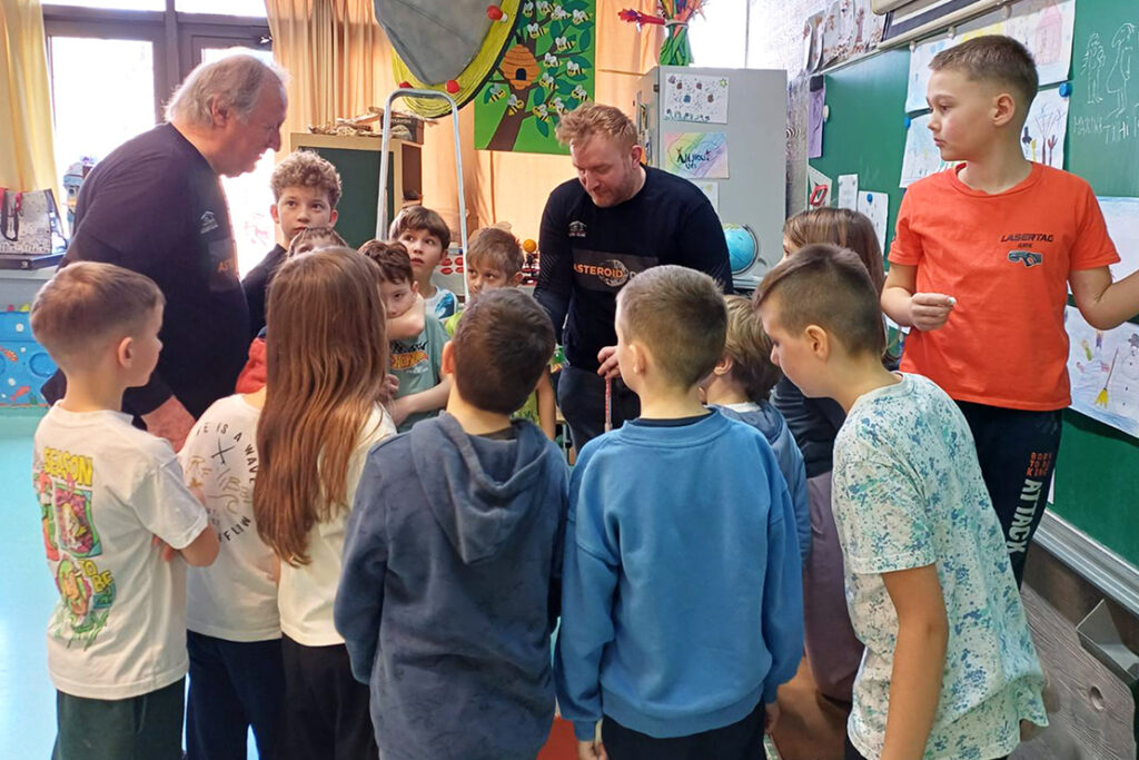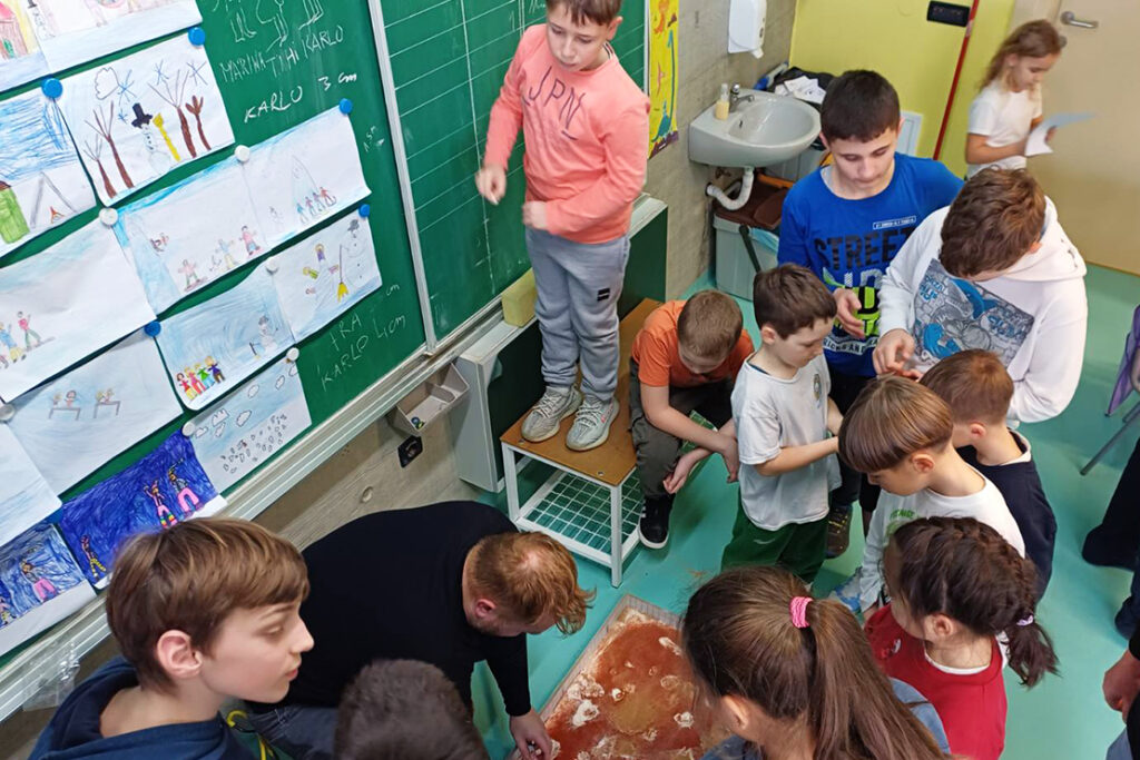 Pa krenimo redom. Još u prijepodnevnim satima u prostoru krčke osnovne škole startala je višesatna edukativno-znanstvena radionica u koju je bilo uključeno 70 učenika – najmlađih krčkih istraživača, a koju su s posebnom pažnjom proveli dr. sc. Tihomir Marjanac, dr. sc. Marina Čalogović i mag. Karlo Bermanec, članovi Udruge ProGEO-Hrvatska. Riječ je o radionici tematski vezanoj uz izložbu Impaktori, impakti i impaktni krateri koja je polaznicima, uz interakciju, praktičke zadatke i zanimljive pokuse kao metode rada, otkrila mnoge zanimljivosti vezane uz geološke i astronomske teme poput činjenica o kraterima, asteroidima ili pak Tunguskoj eksploziji. O zaista lijepoj atmosferi koja je vladala tijekom trajanja radionice svjedoči i video na kojoj su zabilježeni njezini segmenti, a kojeg možete pogledati u nastavku.