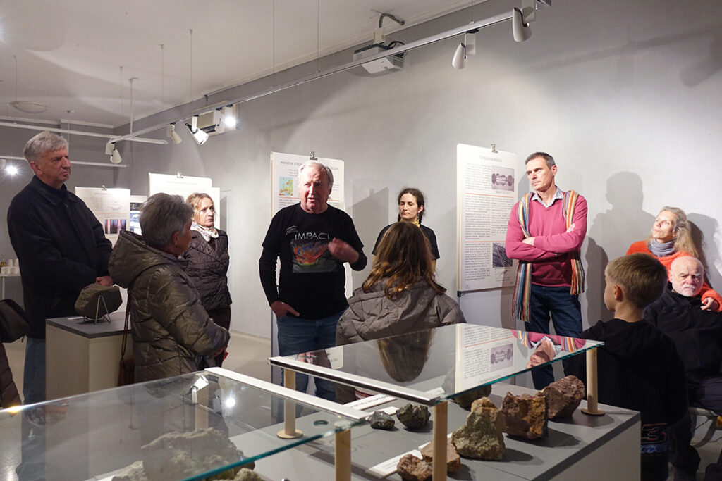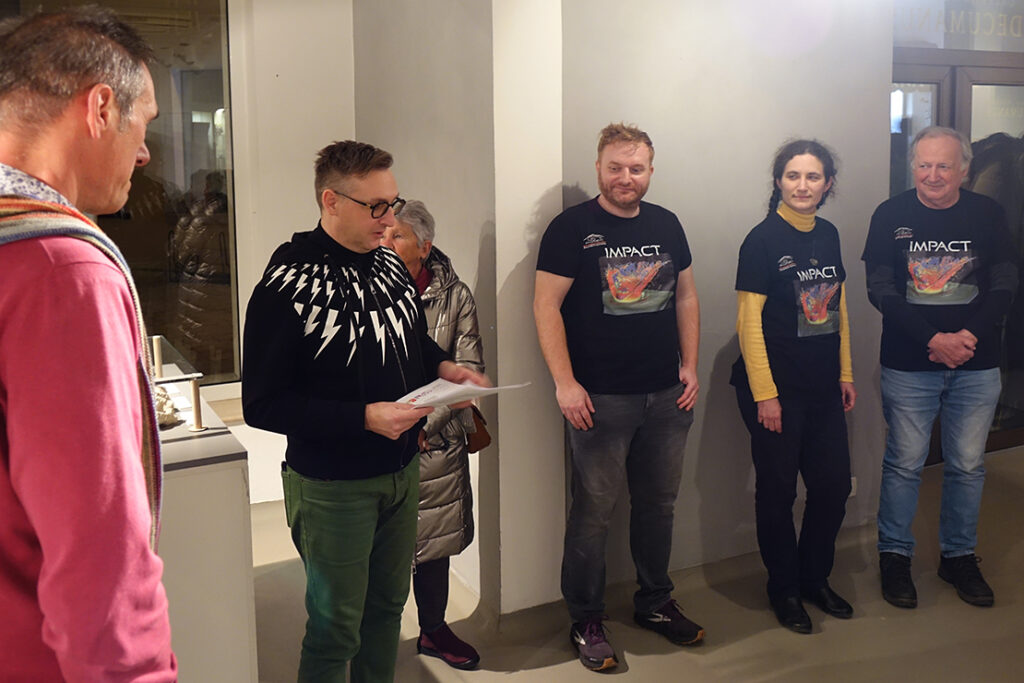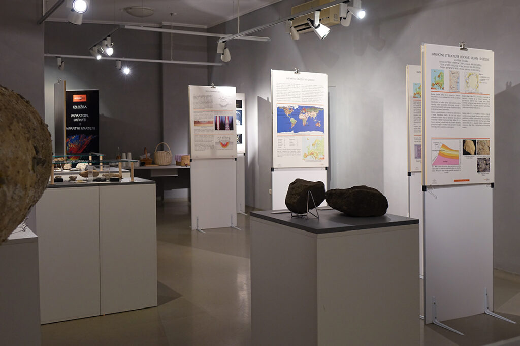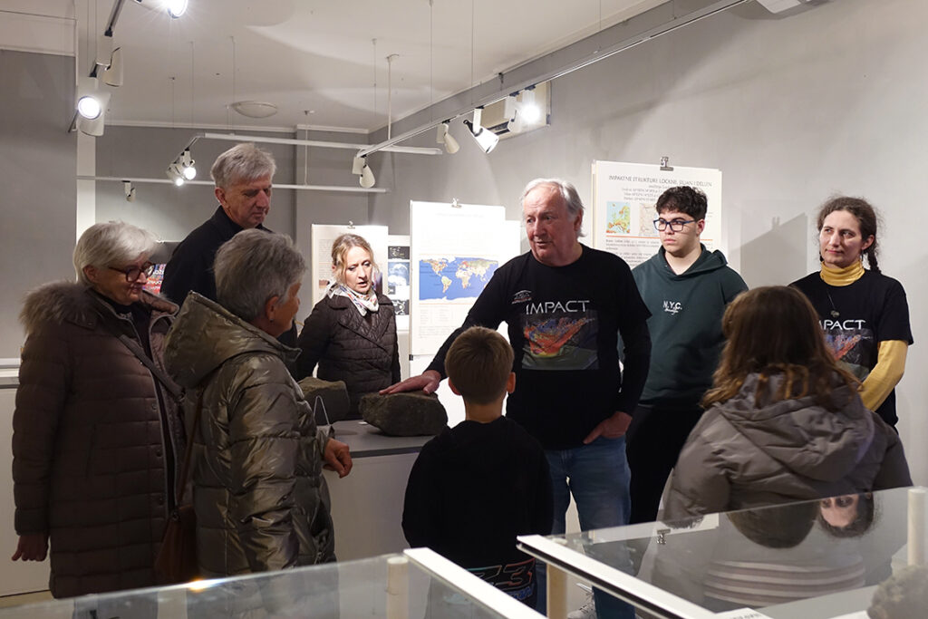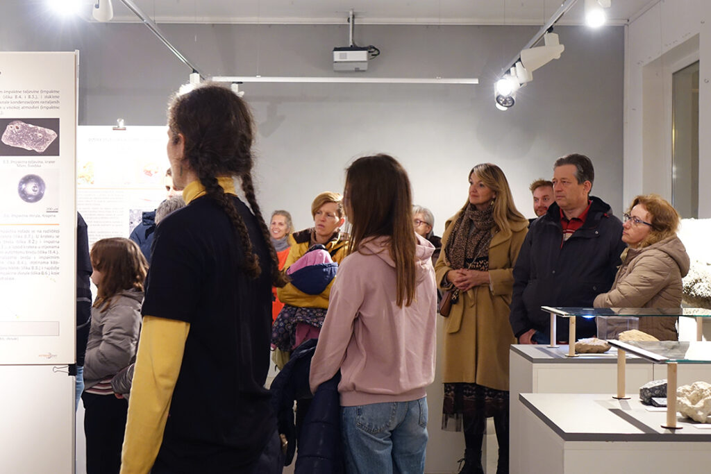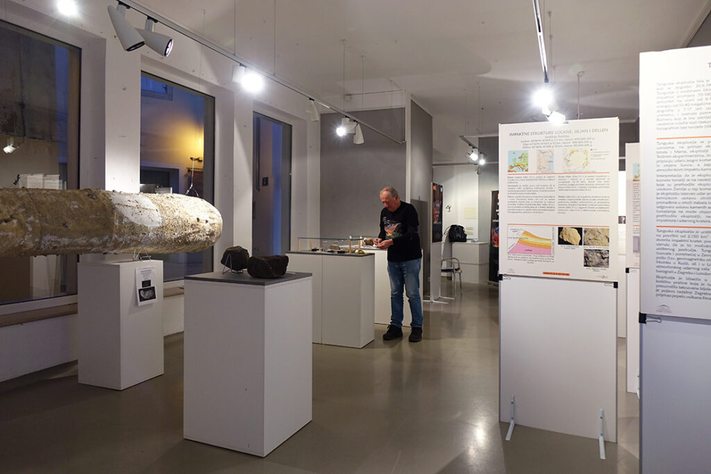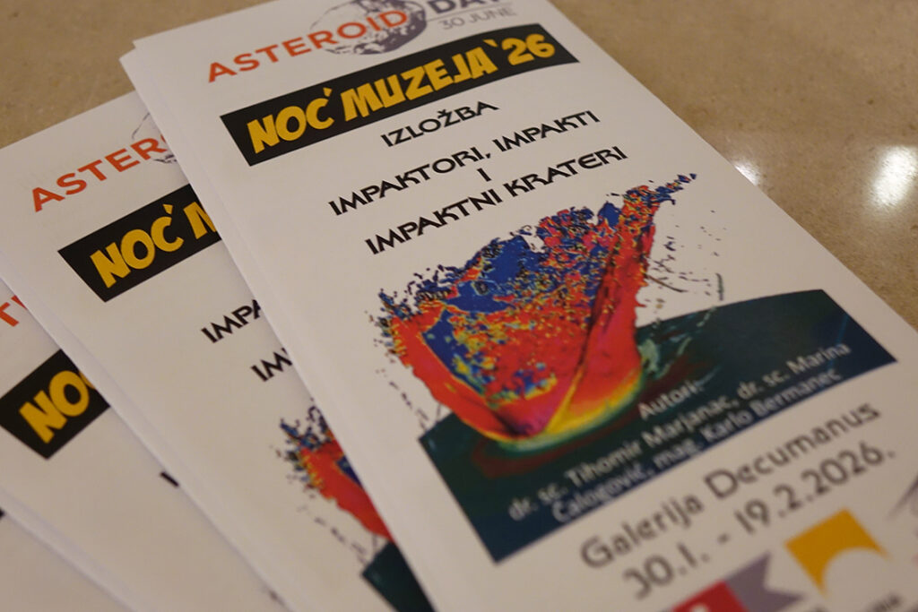 Večernji dio programa organiziranog u povodu Noći muzeja otpočeo je u Galeriji Decumanus, i to otvorenjem izložbe Impaktori, impakti i impaktni krateri. Izložbu su zajednički predstavili njezini autori, već spomenuti dr. sc. Tihomir Marjanac, dr. sc. Marina Čalogović i mag. Karlo Bermanec, uz uvodno izlaganje Igora Gržetića, ravnatelja Centra za kulturu Grada Krka, koji je kazivao o koncepciji ovogodišnjeg galerijskog programa i važnosti priključivanja ovakvim inicijativa koje publici donose susret sa znanošću te novim znanjima i spoznajama. Zavidan broj posjetitelja potom je prepušten autorima koji su pojašnjavali različite segmente postava – sadržaj zabilježen na informativnim panoima, izložene uzorke stijena i impakata (breče, udarne konuse, impaktne taljevine, suevite, impaktna stakla, tektite…) te impresivnu maketu asteroida Itokawa izrađenu u mjerilu 1:200.