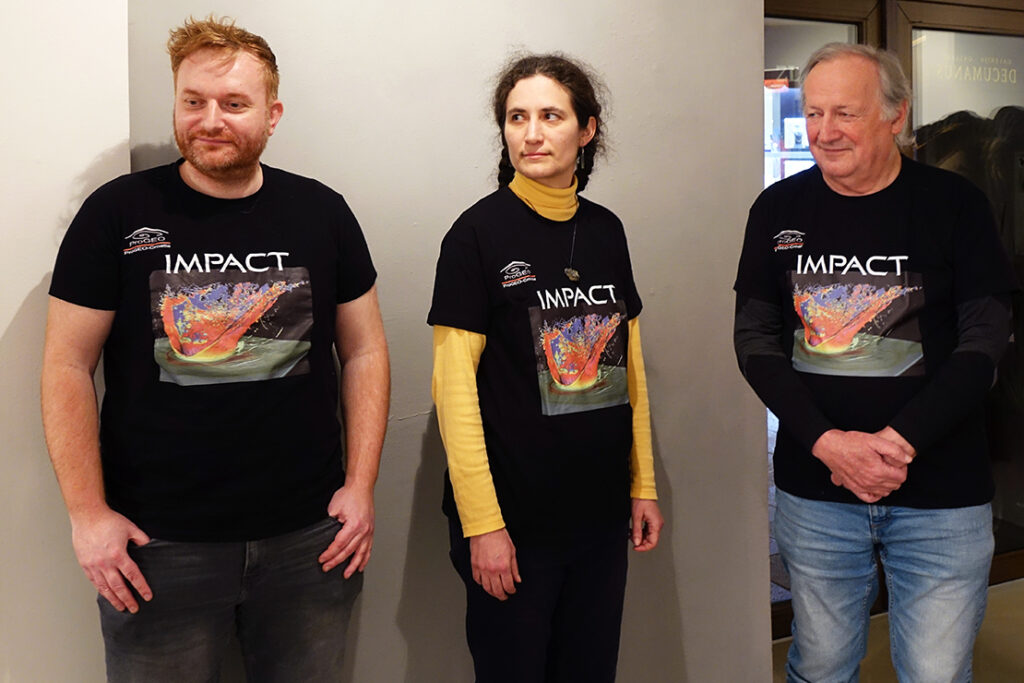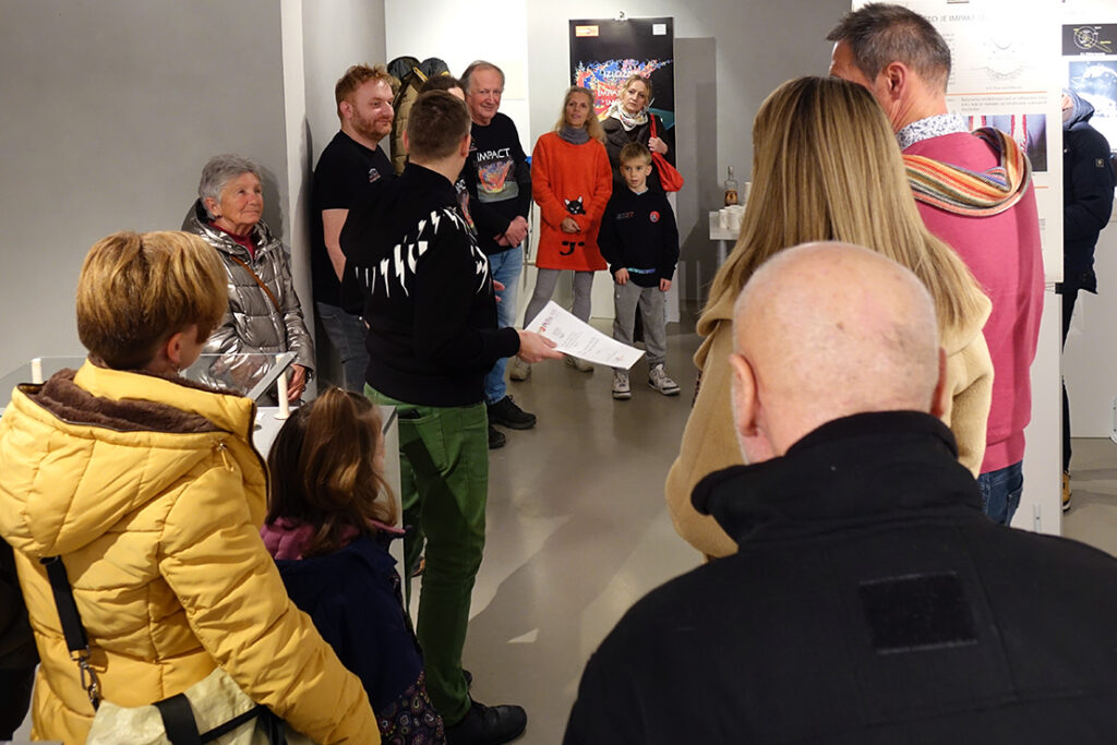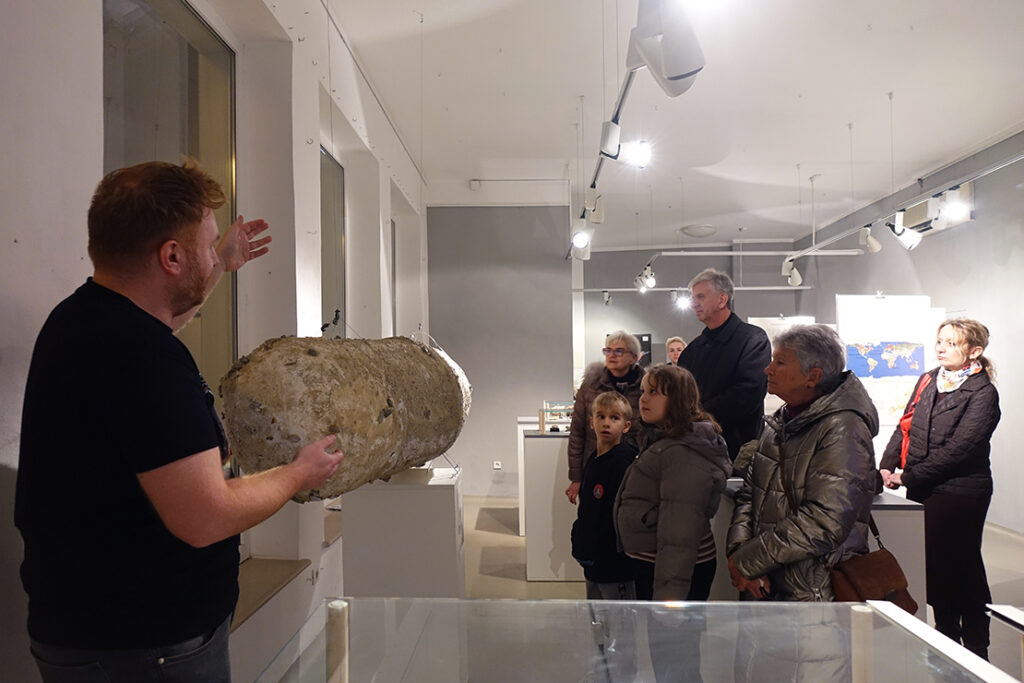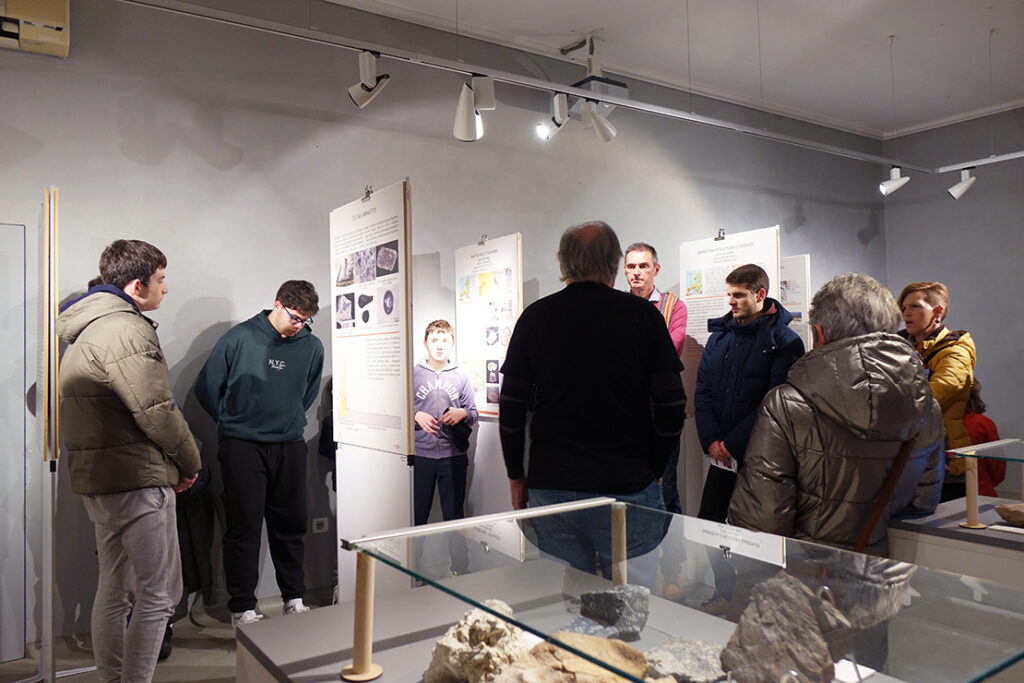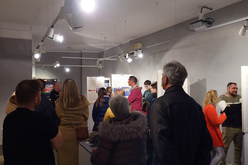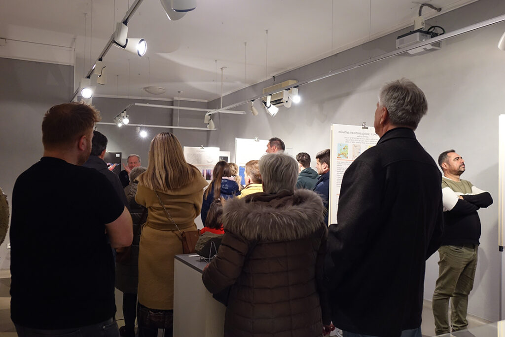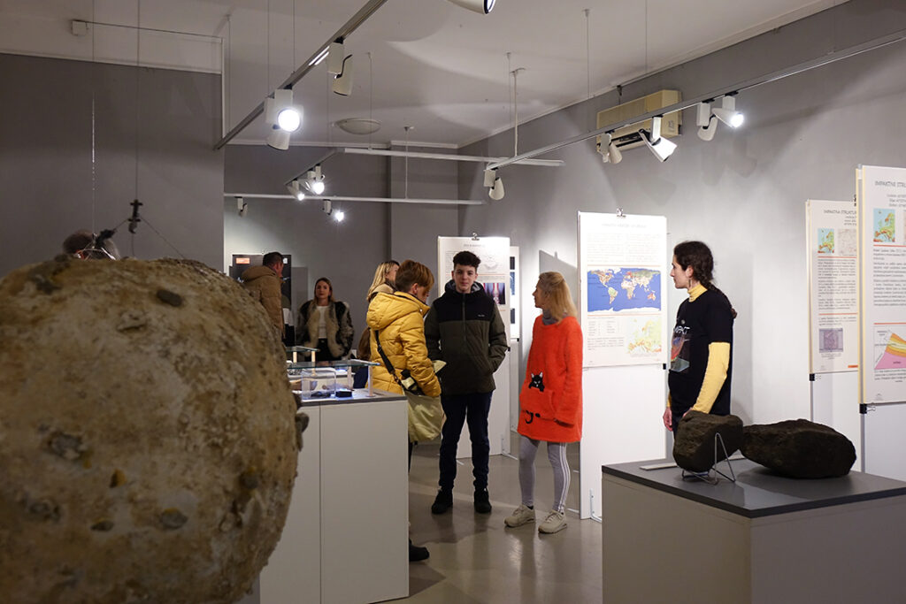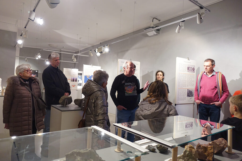 Večernji dio programa organiziranog u povodu Noći muzeja otpočeo je u Galeriji Decumanus, i to otvorenjem izložbe Impaktori, impakti i impaktni krateri. Izložbu su zajednički predstavili njezini autori, već spomenuti dr. sc. Tihomir Marjanac, dr. sc. Marina Čalogović i mag. Karlo Bermanec, uz uvodno izlaganje Igora Gržetića, ravnatelja Centra za kulturu Grada Krka, koji je kazivao o koncepciji ovogodišnjeg galerijskog programa i važnosti priključivanja ovakvim inicijativa koje publici donose susret sa znanošću te novim znanjima i spoznajama. Zavidan broj posjetitelja potom je prepušten autorima koji su pojašnjavali različite segmente postava – sadržaj zabilježen na informativnim panoima, izložene uzorke stijena i impakata (breče, udarne konuse, impaktne taljevine, suevite, impaktna stakla, tektite…) te impresivnu maketu asteroida Itokawa izrađenu u mjerilu 1:200.