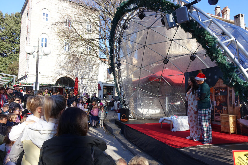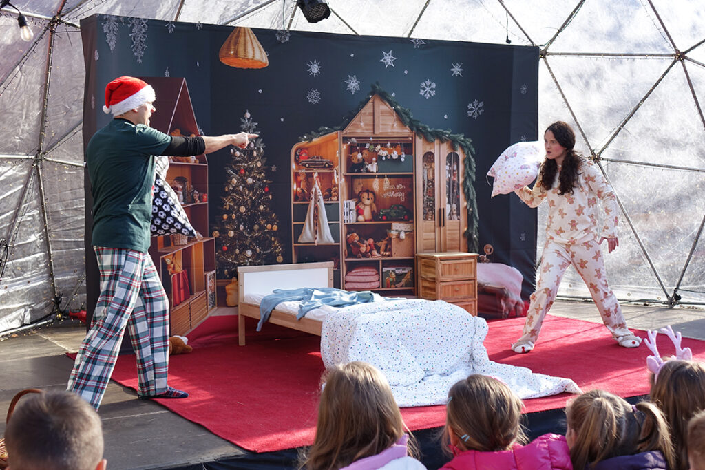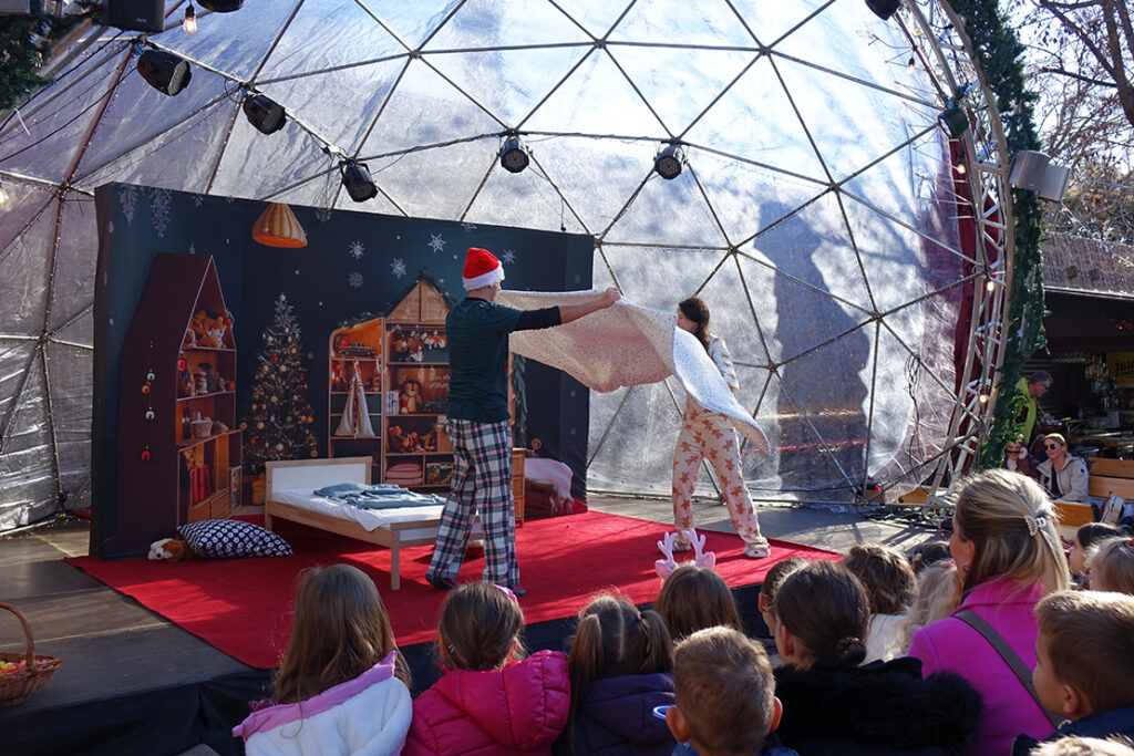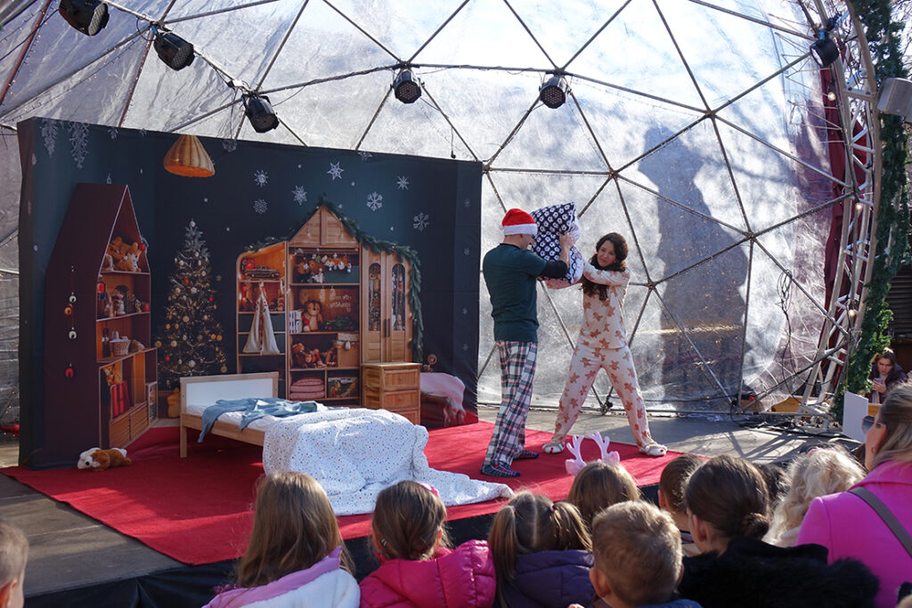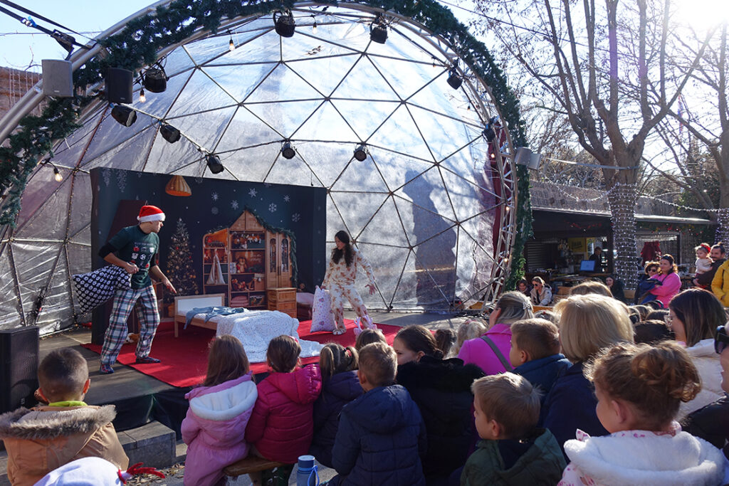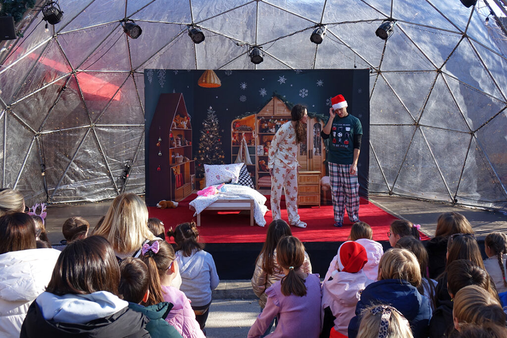 Najprije su pred polukupolom preko puta Velikog parka, 13. prosinca, okupljeni mališani i njihove obitelji uživali u dinamičnoj i razigranoj predstavi Kako uloviti Djeda Mraza, u izvedbi ZIA produkcije, a čiji su glavni protagonisti bili simpatični brat i sestra blizanci, Denis i Elis. Njihova najveća želja ove je godine bila uloviti Djeda Mraza! Iako su to, doduše bez uspjeha, pokušali već nekoliko puta, ovoga su se puta pokazali odlučnijima nego li ikad prije, a usto su imali i sjajan, novi plan. Jesu li naposlijetku uspjeli, odgovor je publici donijela ova zabavna predstava puna smijeha, komičnih situacija i toplih poruka o obitelji, prijateljstvu i snazi bratsko-sestrinske ljubavi koja, na kraju, uvijek pobjeđuje.