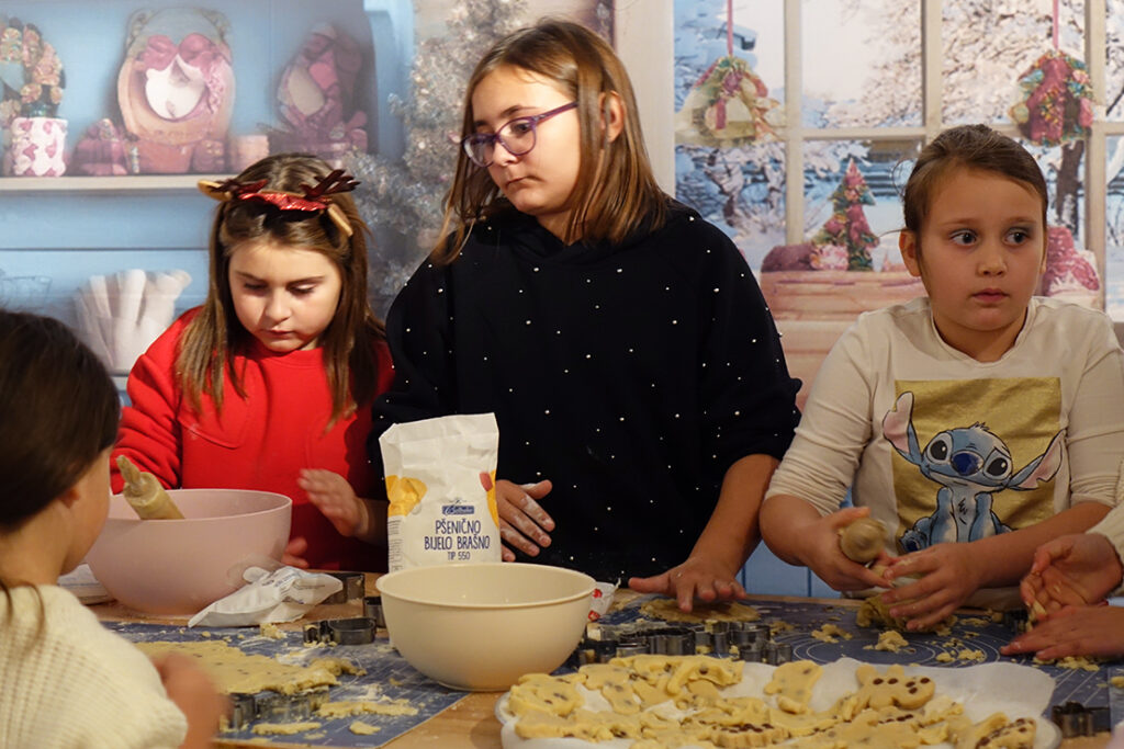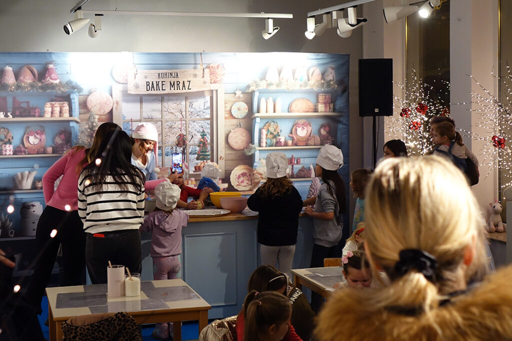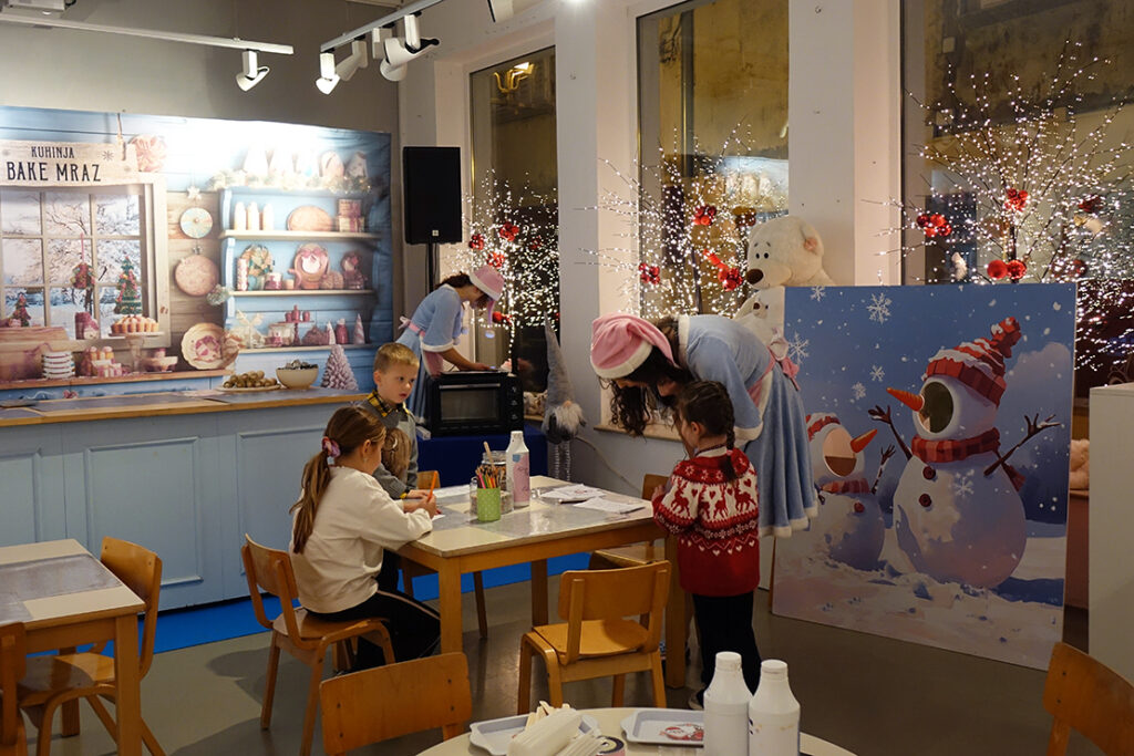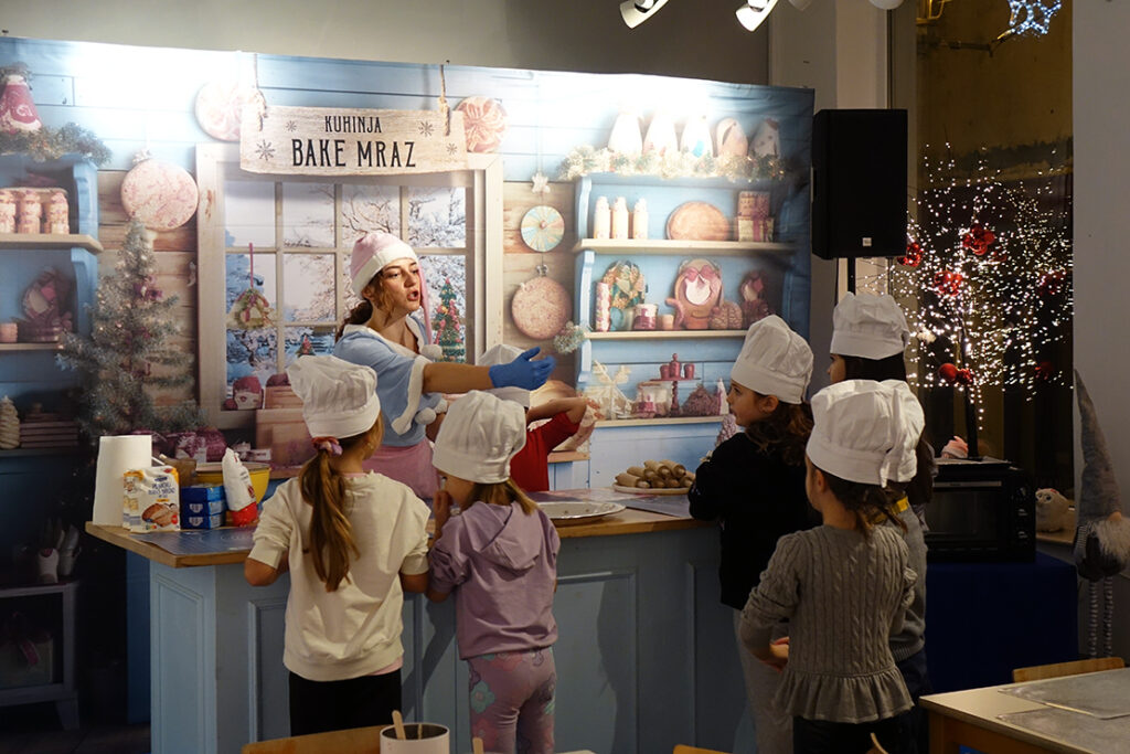 Istog je dana, u popodnevnim satima, Galerija Decumanus postala Kuhinja Bake Marz. U ovoj najmirisnijoj adventskoj radionici mališani su zajedno s Bakom Mraz i njezinom pomagačicom izrađivali najfinije božićne keksiće i kuglice. Nakon što su dobro oprali ruke, zavezali pregače i stavili kuharske kapice, mali su slastičari zamijesiti tijesto, oblikovali kolačiće te ih nakon pečenja ukrašavali najmaštovitijim detaljima po vlastitom izboru – šarenim mrvicama, čokoladnim kapljicama i jestivim bojama. A svaki je sudionik radionice svoje slastice mogao zapakirati te odnijeti svojoj kući, uz pretpostavku da se prethodno njima nije osladio! Ovom je blagdanskom avanturom započelo najslađe odbrojavanje do Božića!
