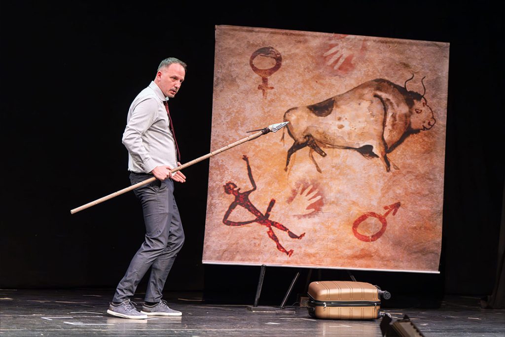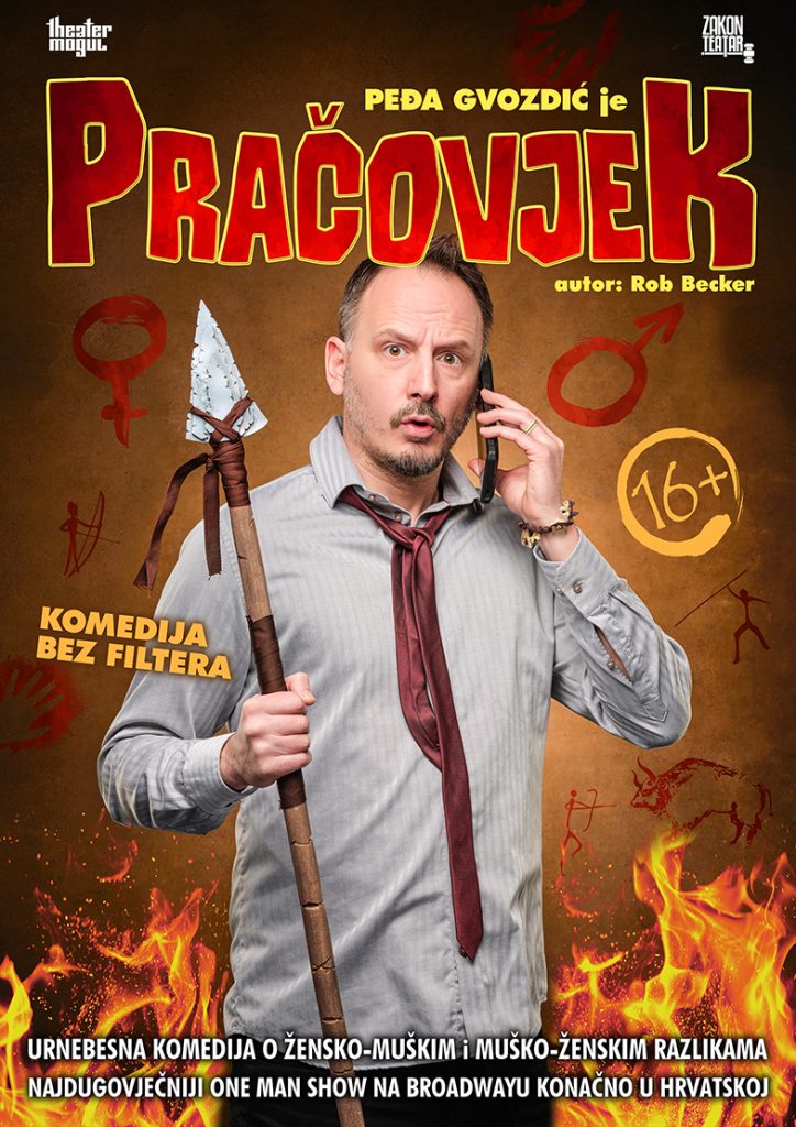 Legendarni Pračovjek, iza kojeg stoji autor Rob Becker, s mnogo humora i šarma istražuje razlike između muškaraca i žena, od prapovijesti pa sve do današnjih dana. Kroz niz komičnih situacija i iskrenih zapažanja, nagrađivani hrvatski glumac Peđa Gvozdić vječni rat spolova publici će približiti na zabavan, duhovit i nadasve iskren način. Predstava, u koprodukciji Zakon teatra i Teatra Mogul, oduševljava publiku gdje god se izvodi, a sada po prvi put stiže i pred Krčane. Pračovijek ili izvodno Defending the Caveman najdugovječniji je one-man show u povijesti Broadwaya i Las Vegasa. Ova urnebesna komedija tijekom godina izvođenja osvojila je srca milijuna ljudi diljem svijeta, a dosad je preveden na čak 25 jezika. Rob Becker pišući ovaj popularni tekst tijekom trogodišnjeg razdoblja proučavao je psihologiju, sociologiju i prapovijest kako bi kreirao jedinstvenu komediju bez filtera o odnosu i razlikama muškaraca i žena.