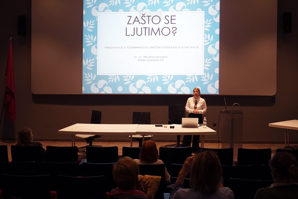 Festival je krenuo predavanjem Zašto se ljutimo koje je, 22. travnja, u Velikoj vijećnici Grada Krka – Kinu Krk održala medijatorica, dr. sc. Nikolina Smiljanić. Ono je publici ponudilo uvid u prirodu ljutnje kao emocije te odgovorilo na pitanja – čemu ona zapravo služi, koja je njezina biološka podloga i koji su najčešći okidači poput neispunjenih očekivanja, povrijeđenosti ili straha. Poseban naglasak stavljen je na razumijevanje razlike između potiskivanja emocija i njihove zdrave regulacije, kao i na razvoj konstruktivnih načina komunikacije i rješavanja konflikata. Predavanje je uključivalo i interaktivni dio tijekom kojeg su sudionici dobili priliku artikulirati vlastite okidače ljutnje.
