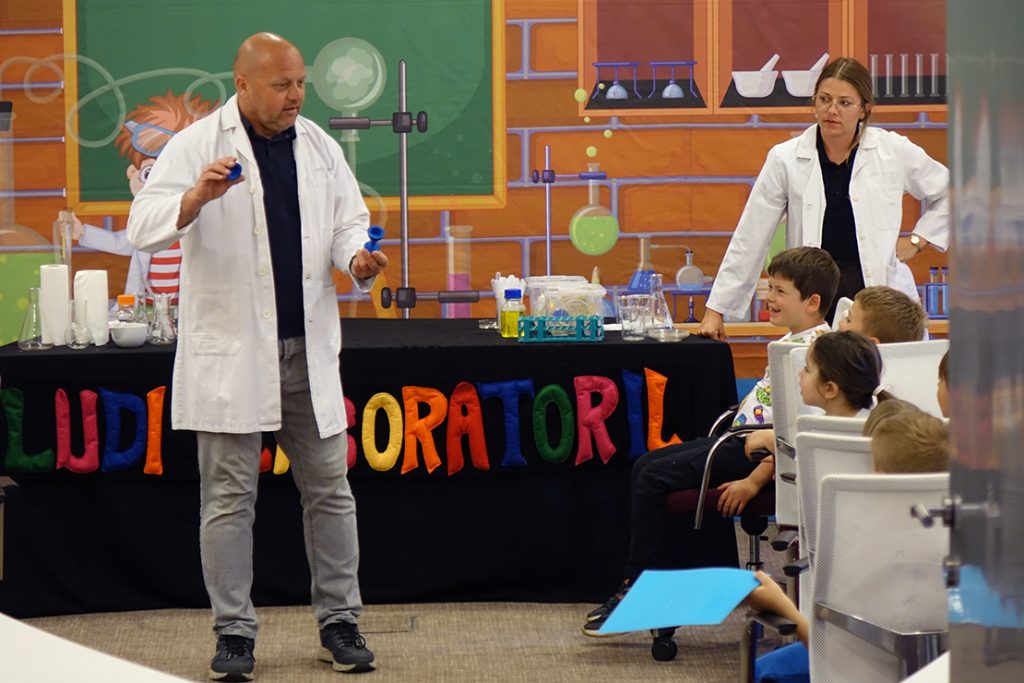 Program je, 23. travnja, nastavljan atraktivnim STEM radionicama za djecu priređenim u Maloj vijećnici Grada Krka koja je bila pretvorena u pravi laboratorij. U njemu su brojni krčki mališani, uz stručno vodstvo, izvodili kemijske eksperimente te se okušavali u slaganju različitih mozgalica i izradi zupčanika. Sudionici ove radionice, koju je osmislio kreativni tim Zemlje zabave, kroz pokuse, logičke izazove i praktičan rad na kreativan i interaktivan način zakoračili su u šareni svijet znanosti.